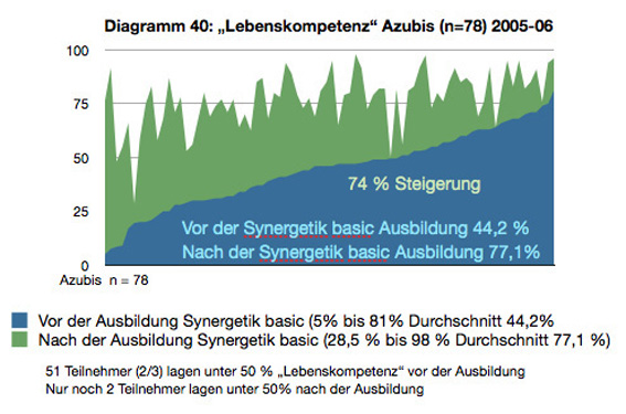 | Von 53 % verbessert auf 78% durch die Grundausbildung | 10 Qualitäten wurden abgefragt: Vor und nach der Ausbildung |